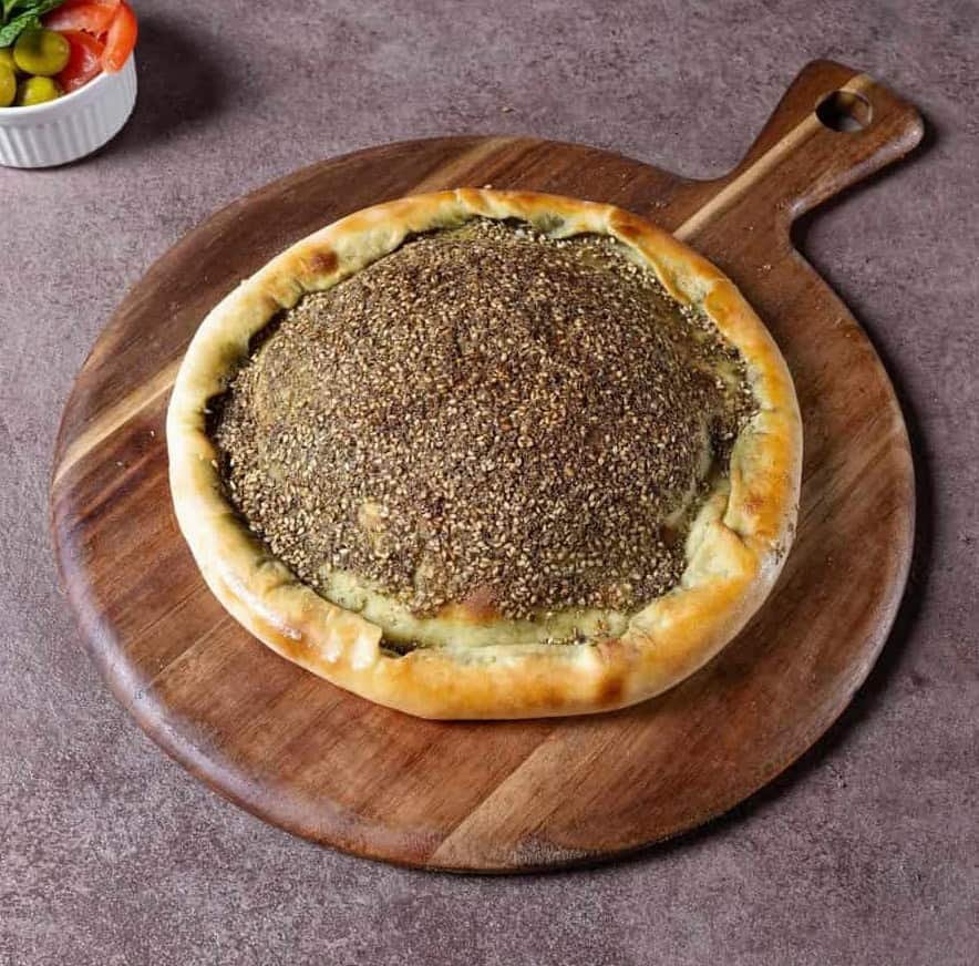 عجينة ممدودة ومحشوة بخليط من الجبنة والزعتر